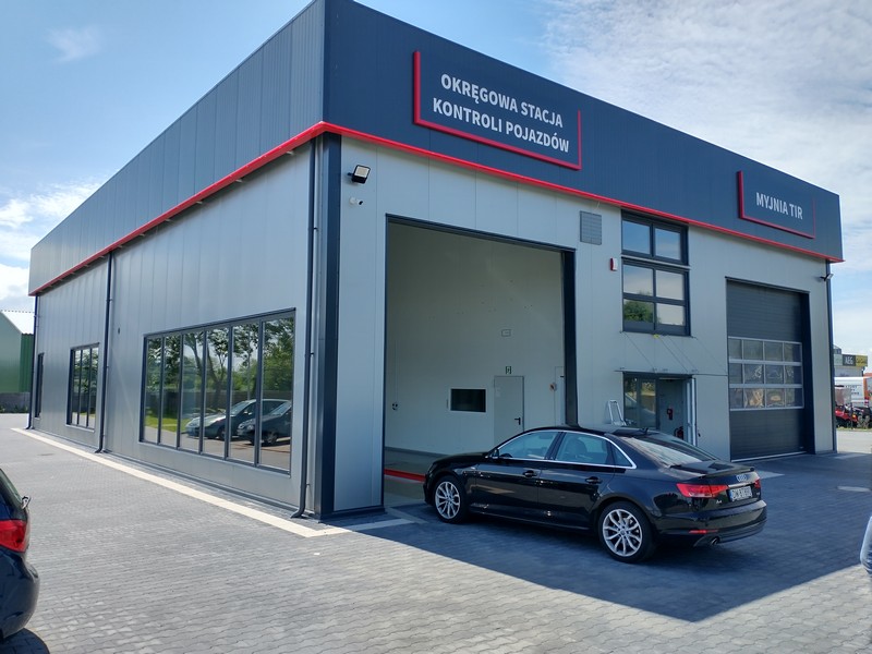 W ciągu dwóch lat udało nam się wspólnie z Inwestorami zaprojektować oraz wyposażyć obiekt oferujący badania techniczne pojazdów o DMC. do i powyżej 3,5t. W budynku zlokalizowana jest również myjnia dla samochodów ciężarowych, biura firmy transportowej oraz stacji kontroli pojazdów jak również pomieszczenia socjalne dla klientów i pracowników obiektu. Budynek wykonany jest w technologii lekkiej – konstrukcja stalowa oraz płyta warstwowa.