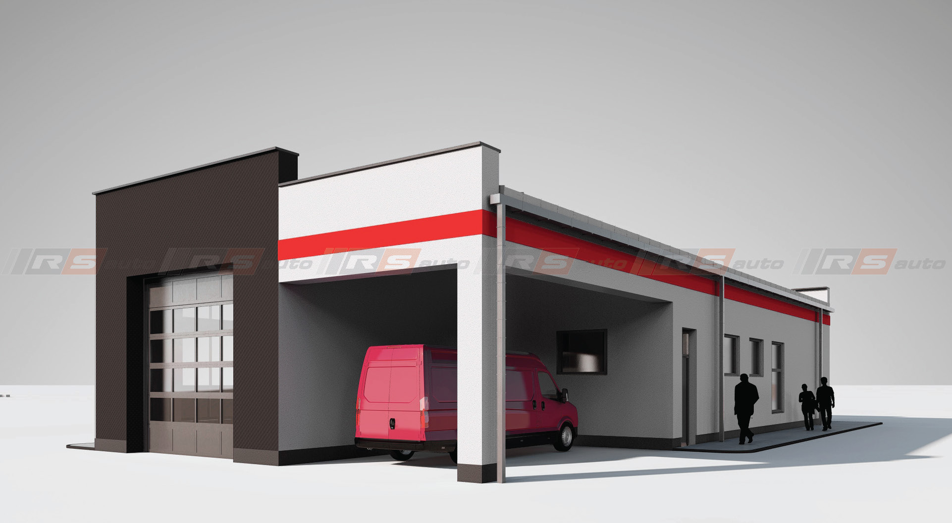 Budynek Okręgowej Stacji Kontroli Pojazdów z jednym stanowiskiem diagnostycznym, zaprojektowany został w technologii tradycyjnej, murowanej. Jednokondygnacyjny z zapleczem biurowym, poczekalnią dla klientów i pomieszczeniami technicznymi, socjalnymi przeznaczonymi dla pracowników stacji, z osobnym wejściem. Długość budynku pozwala na odpowiednie umiejscowienie kanału diagnostycznego oraz wszystkich niezbędnych urządzeń potrzebnych w OSKP.