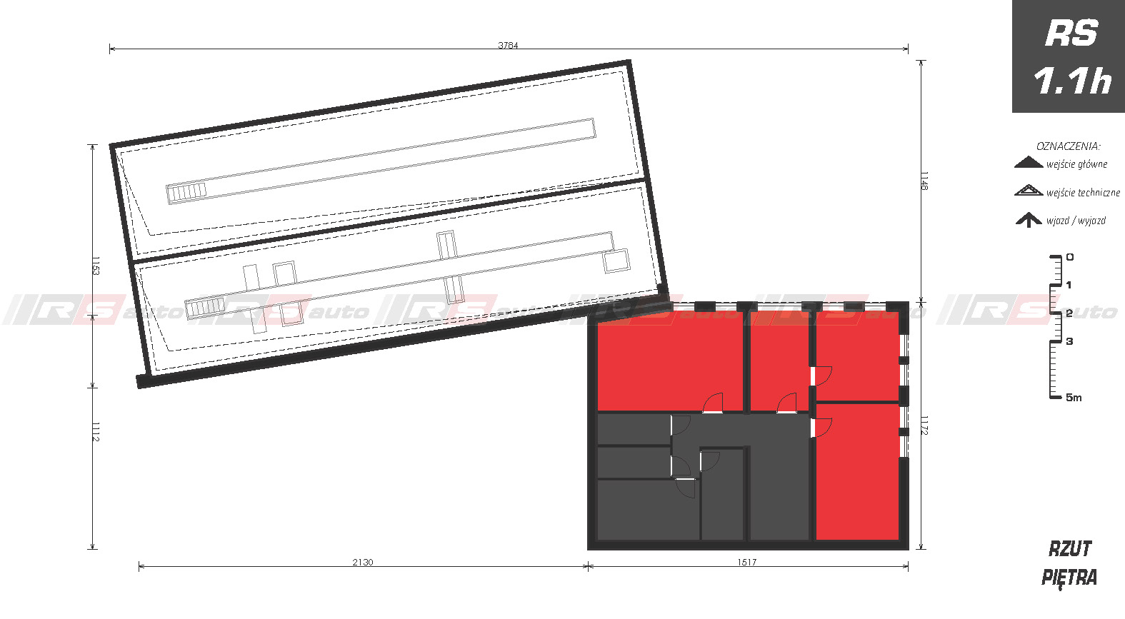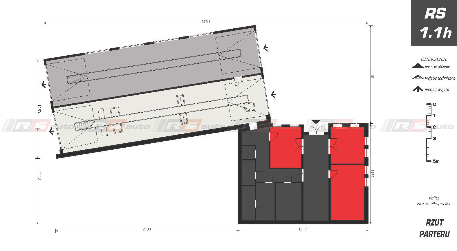 stanowiskiem serwisowym. Zaprojektowany został w technologii mieszanej, cześć diagnostyki i serwisu w konstrukcji szkieletowej z okładziną z płyt warstwowych, część socjalno-biurowa w technologii tradycyjnej, murowanej. Dwukondygnacyjny z zapleczem biurowym, poczekalnią dla klientów i pomieszczeniami technicznymi, socjalnymi przeznaczonymi dla pracowników stacji i pomieszczeniami biurowymi na piętrze.