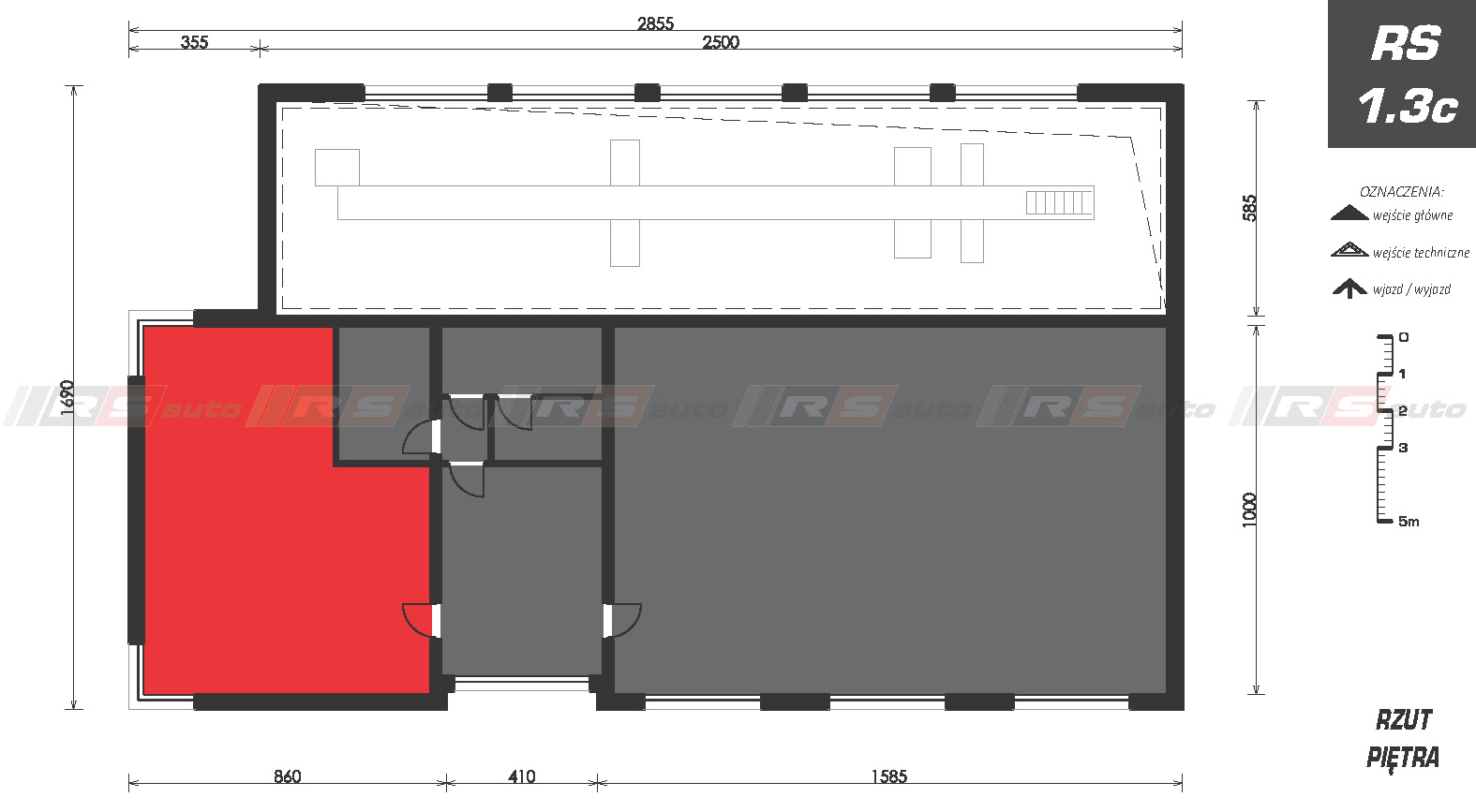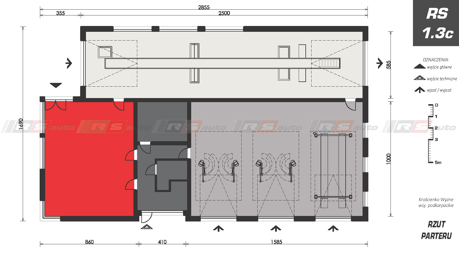 Wymiary budynku pozwalają na odpowiednie umiejscowienie kanału diagnostycznego oraz wszystkich niezbędnych urządzeń potrzebnych w OSKP.