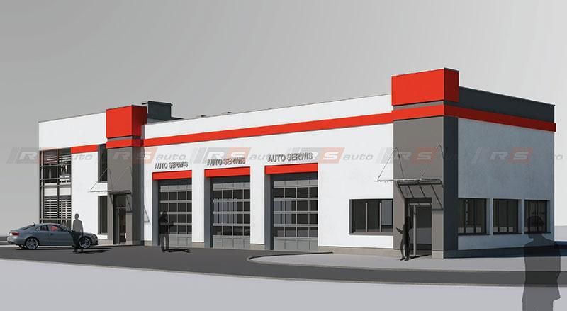 Budynek Okręgowej Stacji Kontroli Pojazdów z jednym stanowiskiem diagnostycznym i trzema stanowiskami serwisowymi. Sztandarowy projekt RS AUTO realizowany w wielu wariantach na terenie całego kraju. Zaprojektowany w technologii tradycyjnej, murowanej. Dwukondygnacyjny