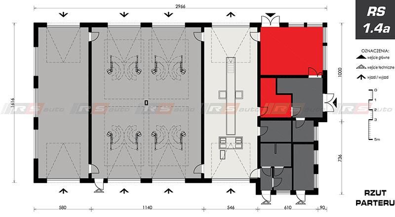 Długość budynku pozwala na odpowiednie umiejscowienie kanału diagnostycznego oraz wszystkich niezbędnych urządzeń potrzebnych w OSKP.