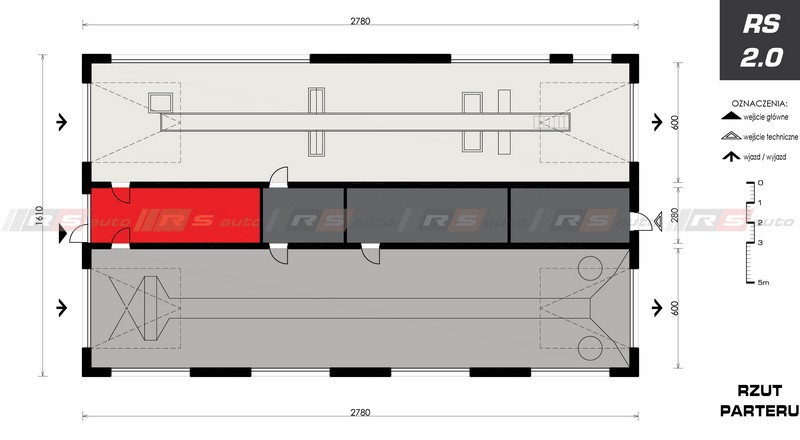 Długość budynku pozwala na odpowiednie umiejscowienie kanału diagnostycznego oraz wszystkich niezbędnych urządzeń potrzebnych w OSKP.