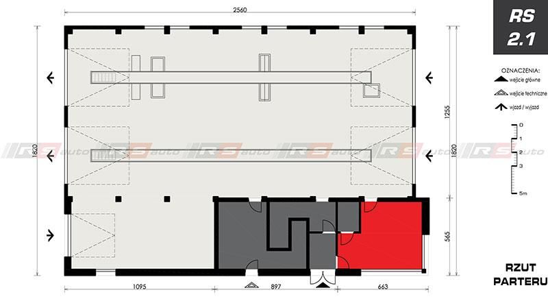 Budynek Okręgowej Stacji Kontroli Pojazdów z jednym stanowiskiem diagnostycznym oraz dwoma stanowiskami serwisowymi przeznaczonymi zarówno dla samochodów osobowych, jak i dla pojazdów powyżej 3,5 tony. Zaprojektowany w technologii szkieletowej, pozwalających na otwarcie przestrzeni “warsztatu” i wygodna obsługę pojazdów. Budynek ze sporym zapleczem socjalno – biurowym rozmieszczonym na dwóch kondygnacjach.