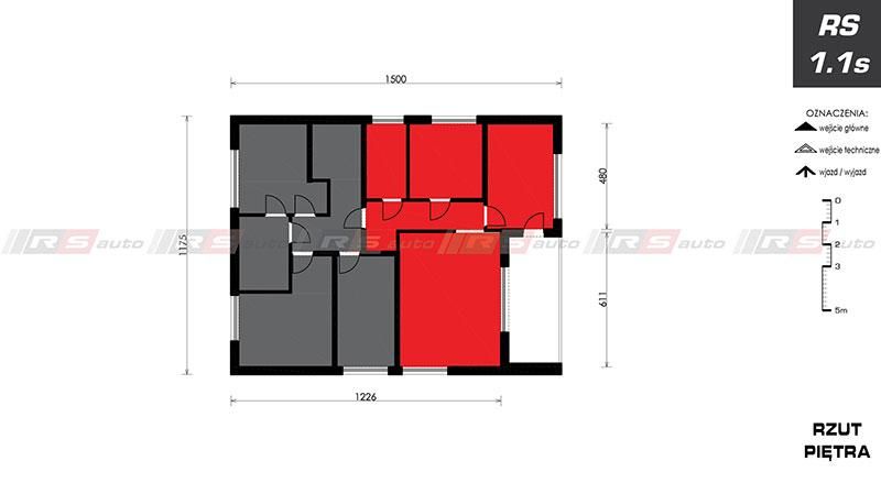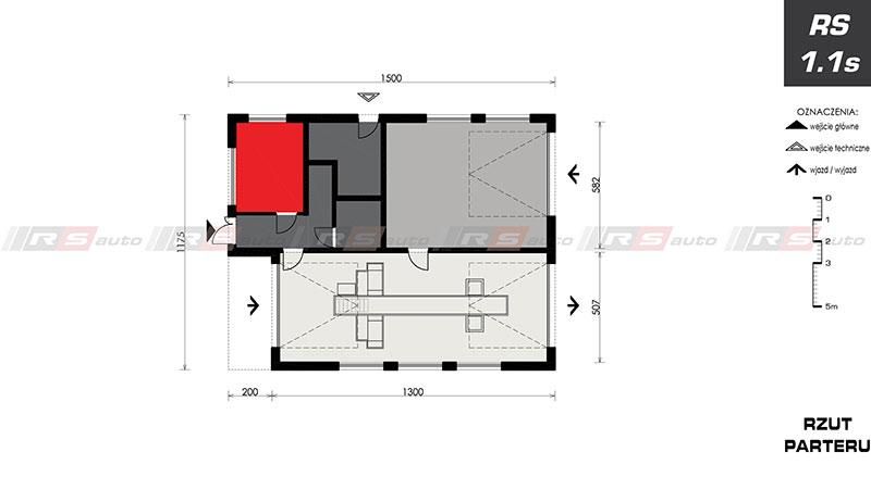 Budynek Podstawowej Stacji Kontroli Pojazdów z jednym stanowiskiem diagnostycznym, zaprojektowany został w technologii tradycyjnej, murowanej. Budynek z poddaszem użytkowym, przeznaczonym na cele biurowe lub mieszkalne. Zaplecze biurowe i kotłownia na parterze. Budynek z pomieszczeniem serwisowym lub dodatkowym diagnostycznym.